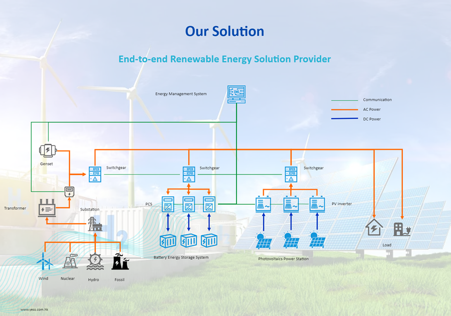 YESS delivers end-to-end renewable energy solutions, encompassing photovoltaic power generation, energy storage systems, microgrid design, and energy management. Our core offerings include the Appolo™ Photovoltaic Ecosystem and Artemis™ Energy Storage Ecosystem, which integrate high-efficiency components, smart inverters, customized storage systems, and digital management platforms to meet diverse energy needs across industries, communities, and large-scale power stations. The solutions stand out by leveraging global premium supply chain resources (e.g., manufacturing strengths of the Greater Bay Area) and localized service capabilities, ensuring rapid project execution and cost-effectiveness from design to deployment.